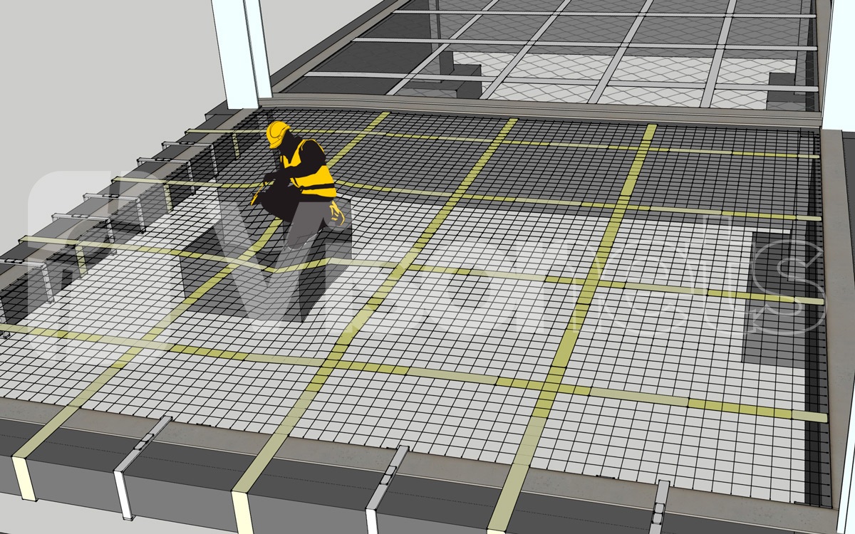Los sistemas Walk-on net se diseñan y fabrican específicamente para un proyecto determinado teniendo en cuenta la tarea a realizar. Estos sistemas se instalan con una membrana de red de seguridad que protege de las caídas de residuos y objetos por debajo de la misma, así se consigue un beneficio doble. Por un lado se permite el movimiento sin restricciones de la fuerza de trabajo por encima de la red y por otro se elimina el sentimiento de la exposición para los usuarios.